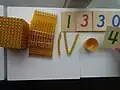 Przeprowadzone przez dr Montessori obserwacje rodzajów przedmiotów, które sprawiają dzieciom przyjemność i do których wielokrotnie wracają, doprowadziły do zaprojektowania wielu sekwencyjnych pomocy edukacyjnych, pobudzających różne zmysły i pozwalających na dokonanie autokorekty. Są to m.in.: koraliki i wrzeciona do nauki algebry, walce i patyki do nauki geometrii[7], globusy, foremki i mapy-puzzle do nauki geografii, karty i ruchomy alfabet do nauki języków[1] i inne.