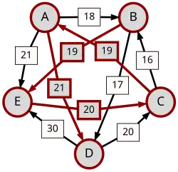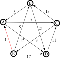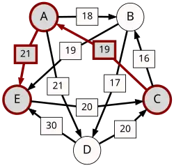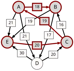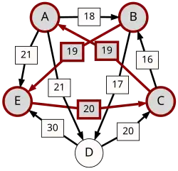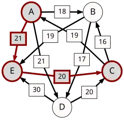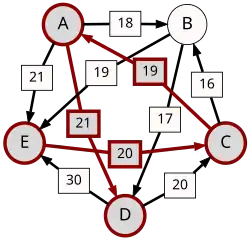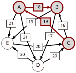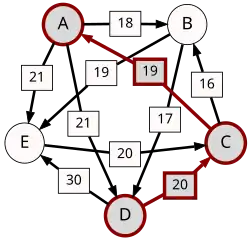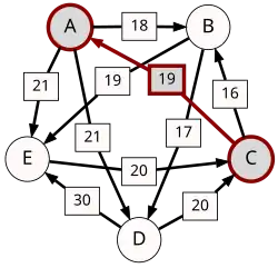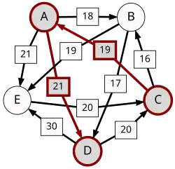 - Dla wszystkich i = 1,...,(n-1): d[C(i),C(i+1)] > d[C(i+1),C(i)].