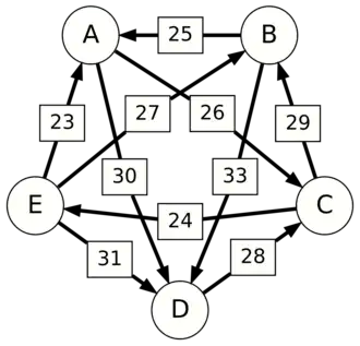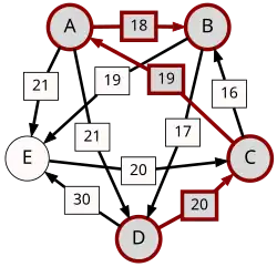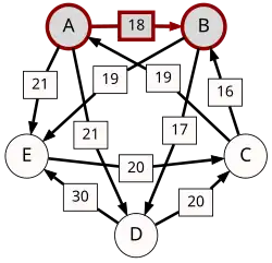 - Wejście: d[i,j] stanowi liczbę wyborców, którzy ściśle preferują kandydata i nad kandydata j.
