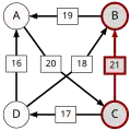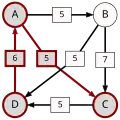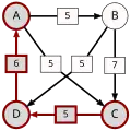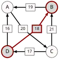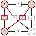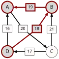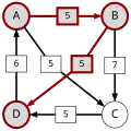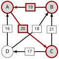 Krytyczne przegrane wśród najsilniejszych ścieżek (ang. strongest paths) są tu pogrubione.