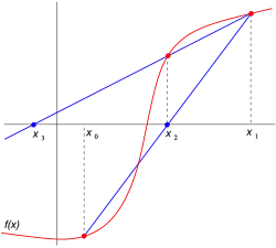 Polega ona na wyznaczeniu punktu przecięcia siecznej przechodzącej przez punkty i z osią OX i zastąpienia tym punktem jeden z końców przedziału, gdzie znajduje się pierwiastek.