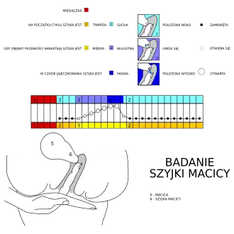 - ↑ Trying to get pregnant? Take a cervical mucus test [online], www.fertilityfactor.com [dostęp 2017-12-03].