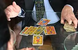 - kartomancja – wróżenie z kart, w tym także z kart tarota[2]