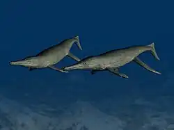 - ↑ Judy A. Massare. Swimming capabilities of Mesozoic marine reptiles: implications for method of predation. „Paleobiology”. 14 (2), s. 187–205, 1988. (ang.).