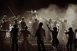 - ↑ Tomasz Jakubowski: Kultowy musical świętuje 25-lecie. Występowali w nim m.in. Doda, Urbańska i Janowski. wp.pl, 2016-01-30. [dostęp 2025-03-16]. Cytat: Po raz pierwszy u nas zastosowano efekty specjalne, jak lasery i ultrafiolet.