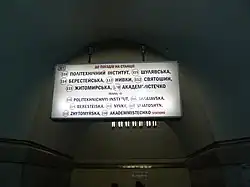 - ↑ Kyiv-future, Nowe poręcze w kijowskim metrze [online], kyiv-future.com.ua [dostęp 2020-12-17] (ukr.).