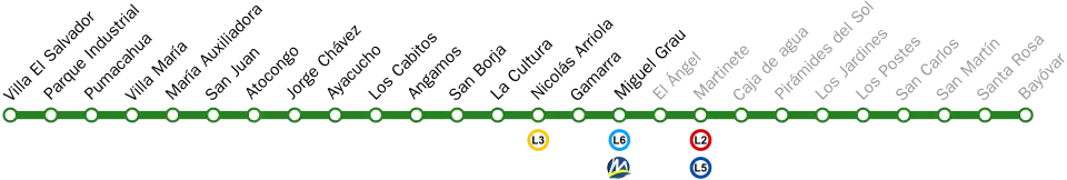 - Linia 1 (Północ – Południe) z San Juan de Lurigancho do Villa El Salvador
