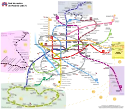 Łącznie: 16 linii; 324 km (w tym 27,8 km Metro Ligero); 326 stacji (w tym 38 Metro Ligero).