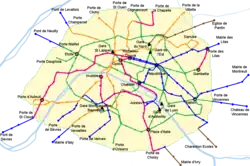 W 1949 r. gotowych było dziewięć przedłużeń linii na przedmieścia, zrealizowanych w ramach projektu z 1929: linia 1 dotarła do Neuilly na zachodzie i do Vincennes na wschodzie, linia 3 do Levallois-Perret, linia 5 do Pantin, linia 7 do Ivry-sur-Seine, linia 9 do Boulogne-Billancourt, linia 11 do Lilas, a linia 12 do Issy-les-Moulineaux.