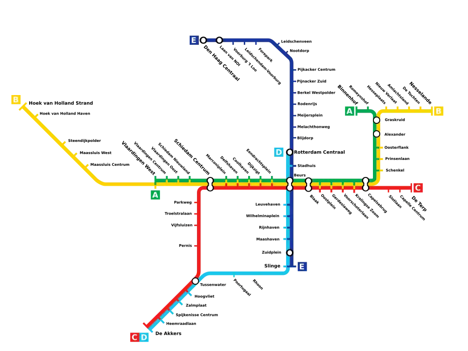 | Linia A | Binnenhof – Vlaardingen West | 24 | 17,2 |