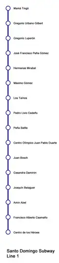 Linia 1[4] 14,5 km[4] Z Villa Mella do Centro de los Héroes 16 stacji[4] |