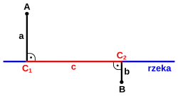 Niech będzie ustaloną prostą na płaszczyźnie. Odległość punktów w metryce rzece wyznacza się następująco: