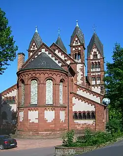 Francuski książę Lutwin, późniejszy biskup Trewiru, wybudował w 676 opactwo na miejscu obecnej miejscowości Mettlach. W 990 za poleceniem opata Lioffina wybudowano kościół Mariacki (Marienkirche), w których pochowano szczątki założyciela opactwa. Kościół ten został wzniesiony w formie oktogonu (wzorowano się na katedrze w Akwizgranie), dziś znany jest jako Alter Turm (pol. stara wieża) i uchodzi za najstarszą budowlę sakralną w Saarze. Obecne budynki opactwa pochodzą z XVIII w. ma tam swoją siedzibę firma Villeroy & Boch.