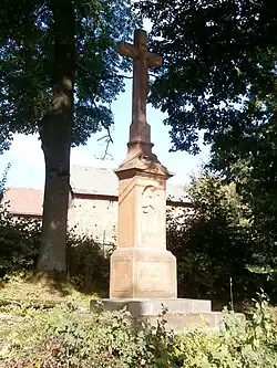 - Krzyż żelazny na kamiennym postumencie przy wejściu do dawnego młyna z 1780 r.[22]