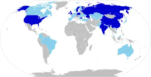| Państwo | 2003 | 2004 | 2005 | 2006 | 2007 | 2008 | 2009 | 2010 | 2011 | 2012 | 2013 | 2014 | 2015 | 2016 | 2017 | 2018 | 2019 |