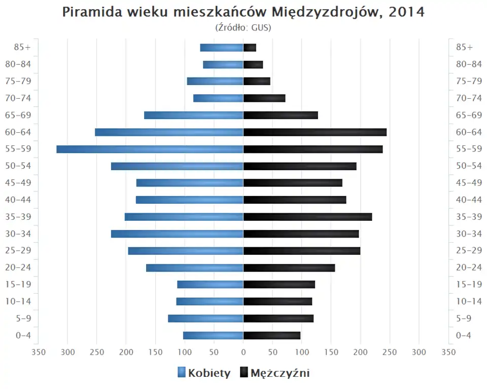 - Piramida wieku mieszkańców Międzyzdrojów w 2014 roku[2].