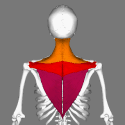U drapieżnych jest to dość gruby mięsień. Część szyjna bierze początek w tylnej części grzbietowo-pośrodkowego brzegu szwu szyi i kończy się na grzebieniu łopatki, zaś część piersiowa sięga dziewiątego kręgu piersiowego[5].