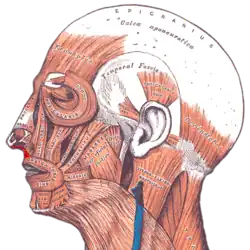 Niekiedy ma przyczep dodatkowy do kości nosowej[1].