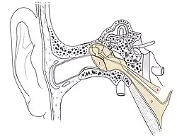 Mięsień napinacz błony bębenkowej (łac. musculus tensor tympani) – w anatomii człowieka mały, pierzasty, wrzecionowaty mięsień poprzecznie prążkowany w uchu środkowym[1]. Położony jest w kanale mięśniowo-trąbkowym nad trąbką słuchową. Początkowe przyczepy ma na górnej powierzchni części chrzęstnej trąbki słuchowej, tylnym brzegu skrzydła większego kości klinowej, kolcu kości klinowej i części skalistej kości skroniowej przy ujściu zewnętrznym kanału mięśniowo-trąbkowego. Brzusiec mięśnia biegnie przez półkanał mięśnia napinacza błony bębenowej (semicanalis musculi tensoris tympani, część kanału mięśniowo-trąbkowego), w którego ścianie również bierze początek część jego włókien. Wychodząc z półkanału już jako zaokrąglone ścięgno, owija się wokół wyrostka ślimakowatego (processus cochleariformis), stanowiącego brzeg tego półkanału i zakręcając pod kątem prostym przebiega przez jamę bębęnkową, kończąc się na górnym odcinku rękojeści młoteczka[1][2][3].