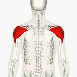 - część tylna (grzebieniowa) przyczepia się do grzebienia łopatki[1][2].