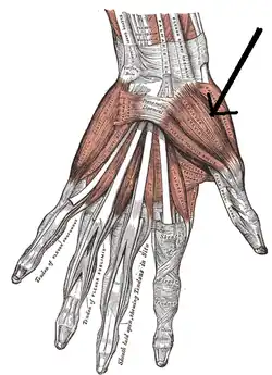 Unaczyniony jest przez gałąź dłoniową powierzchowną od tętnicy promieniowej, a unerwiony przez nerw pośrodkowy[1].