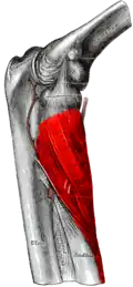 Unaczyniony jest przez tętnicę wsteczną międzykostną i tętnicę wsteczną promieniową, a unerwiony przez nerw promieniowy[1].