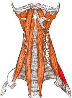 Mięsień pochyły tylny (ang. posterior scalene muscle, łac. musculus scalenus posterior) – w anatomii człowieka parzysty mięsień zaliczany do grupy głębokich mięśni szyi. Rozpoczyna się na guzkach tylnych wyrostków poprzecznych kręgów C5–C7. Przebiega silnie skośnie do tyłu od innych mięśni pochyłych i przyczepia się do powierzchni zewnętrznej drugiego żebra, na guzku mięśnia pochyłego[1][2]. Unaczyniony jest przez gałęzie tętnicy tarczowej dolnej. Unerwienie pochodzi od gałęzi przednich nerwów rdzeniowych C6–C8[3].