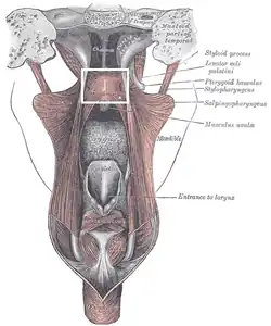 Mięsień podniebienno-gardłowy (łac. musculus palatopharyngeus) – w anatomii człowieka jeden z mięśni podniebienia miękkiego i gardła, przebiegający w łuku podniebienno-gardłowym[1][2]. Zaczyna się częściowo w środkowym odcinku podniebienia miękkiego i górnej powierzchni rozcięgna podniebiennego, a częściowo na haczyku wyrostka skrzydłowego kości klinowej i dolnym końcu blaszki przyśrodkowej chrząstki trąbki słuchowej. Biegnie ku tyłowi i w dół, kończąc się na tylnym brzegu chrząstki tarczowatej i tylnej ścianie części krtaniowej gardła. W ścianie gardła łączy się z mięśniem rylcowo-gardłowym, razem z nim tworząc najgłębszą warstwę mięśni gardła[1][3][2]. Część zaczynająca się na trąbce słuchowej wyróżniana bywa jako osobny mięsień trąbkowo-gardłowy (musculus salpinopharyngeus)[4].