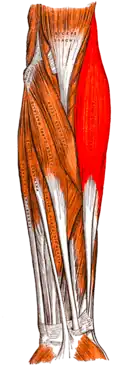 Unaczyniony jest przez tętnicę poboczną promieniową od tętnicy głębokiej ramienia i tętnicę wsteczną promieniową od tętnicy promieniowej, a unerwiony przez gałązki od nerwu promieniowego (odchodzące przed jego podziałem na gałąź powierzchowną i głęboką)[1][2].