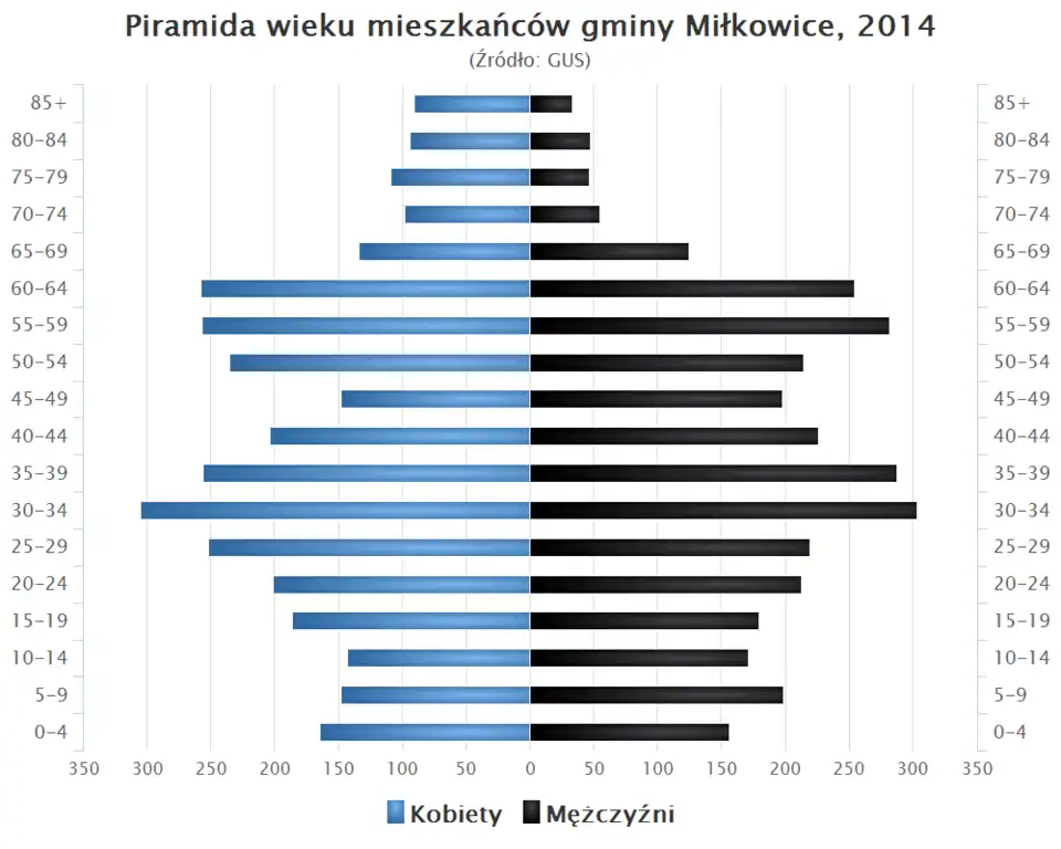 - Piramida wieku mieszkańców gminy Miłkowice w 2014 roku[4].