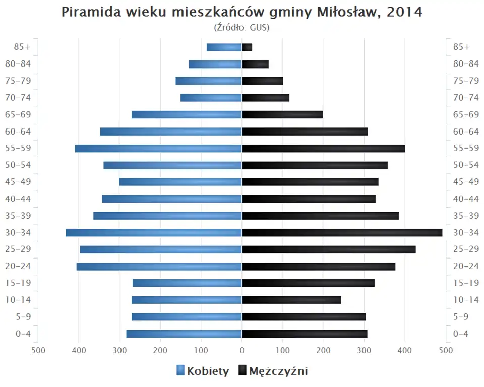 - Piramida wieku mieszkańców gminy Miłosław w 2014 roku[1].