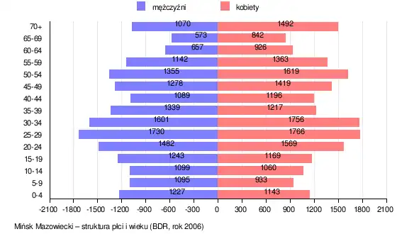 Według danych GUS 31 grudnia 2006 było w Mińsku zameldowanych 37 544 osoby, a faktycznie zamieszkiwało 37 927. Urząd Miasta podaje liczbę 37 529.