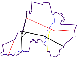 ![]() Zdjęcie lotnicze znad wschodniej części miasta w kierunku zachodnim | |||||