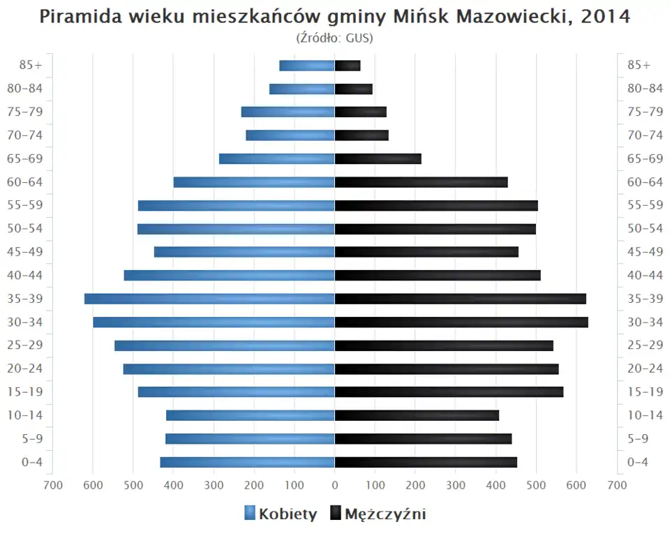 - Piramida wieku mieszkańców gminy Mińsk Mazowiecki w 2014 roku[8].