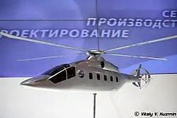 Pierwsze doniesienia o zamierzeniach wytwórni Michaiła Mila pojawiły się w 2008 roku. Nowa maszyna ma posiadać klasyczny układ z wirnikiem głównym, ale ze śmigłem ogonowym ustawionym w pozycji prostopadłej do maszyny, pełniąc funkcję śmigła pchającego. Podobny układ zastosowano w amerykańskim śmigłowcu doświadczalnym Sikorsky X2 a wcześniej w Lockheed AH-56 Cheyenne. Również konkurent z lokalnego rynku, wytwórnia Kamow w swoim śmigłowcu Ka-92 zastosowała taki sam układ ze śmigłem pchającym. W przypadku klasycznych wirników, głównym problemem, na jaki napotykają konstruktorzy śmigłowców dużych prędkości jest efekt przeciągnięcia cofających (obracających się w kierunku przeciwnym do lotu śmigłowca) się łopat wirnika głównego, a tym samym odrywanie się strug powietrza od łopaty. W konsekwencji sprawność łopaty gwałtownie maleje. W celu eliminacji tego zjawiska rosyjska firma ma zamiar wykorzystać system miejscowej eliminacji oderwania (Stall Local Elimination System) usztywniający mocowanie cofającej się łopaty do głowicy wirnika. Dzięki takiemu rozwiązaniu kąt natarcia cofającej łopaty jest bliski 0°, co w efekcie zapobiega efektowi przeciągnięcia. Dodatkowo, konstruktorzy mają zamiar zastosować system regulacji kąta natarcia łopaty wirnika. Osiągnięcie dużej prędkości rzędu 500 km/h ma umożliwić zastosowanie ogonowego, otunelowanego śmigła pchającego ze zmiennym wektorem ciągu.