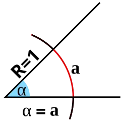 Ponadto miara łukowa ma prostą interpretację geometryczną: jest to długość części okręgu jednostkowego o środku w wierzchołku kąta zawartej w danym kącie.