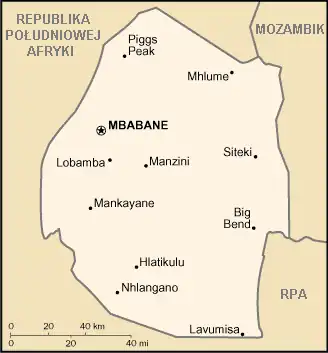Największe miasta w Eswatini według liczebności mieszkańców (stan na 01.01.2005):