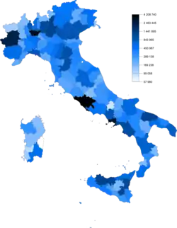| Rzym | RM | Lacjum | 5363 | 4 227 059 | 788 | 121 | 8 kwietnia 2014[b] |