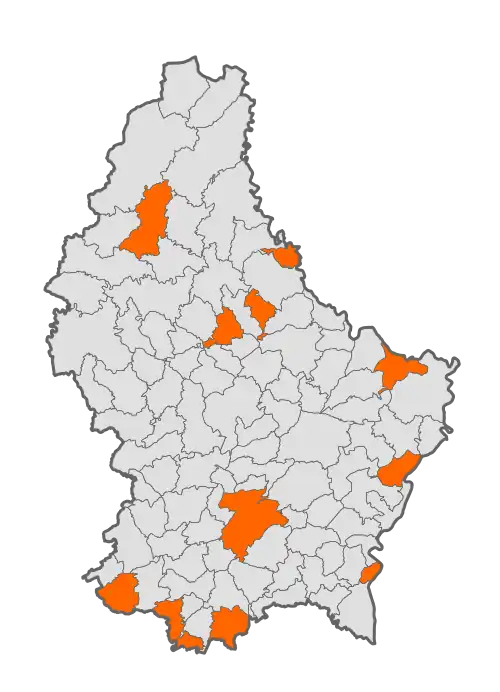 Grevenmacher (Gréiwemaacher) | Grevenmacher | 5.193 | 16,48 | 315 | 24 luty 1843 |
