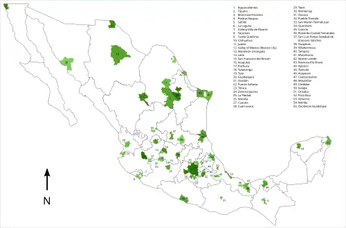 Spis miast Meksyku powyżej 20 tys. mieszkańców według danych szacunkowych z 2010 r. (czcionką pogrubioną wydzielono miasta powyżej 1 mln):