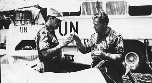 - ↑ (praca zbiorowa, red. Gryko R., Mierzejewski J.) Puławianie w misjach pokojowych – Wspomnienia znad Nilu i Eufratu, Puławy 2006, Towarzystwo Przyjaciół Puław, Stowarzyszenie Kombatantów Misji Pokojowych ONZ ISBN 83-924554-2-8.