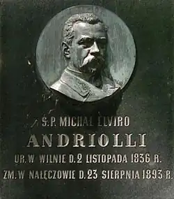 - ↑ Andriolli urodził się 14 listopada w Wilnie, a 5 grudnia 1836 został ochrzczony w wileńskim kościele (wg kalendarza juliańskiego odpowiednio 2 listopada i 23 listopada 1836).