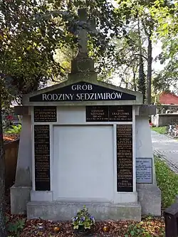 - ↑ Lista osób zasłużonych pochowanych na Cmentarzu Rakowickim (1803–1939). W: Karolina Grodziska–Ożóg: Cmentarz Rakowicki w Krakowie. Kraków: Wydawnictwo Literackie, 1987, s. 143. ISBN 83-08-01428-3.