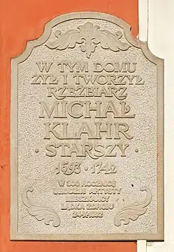 Rzeźbił głównie w drewnie. Dopiero pod koniec życia wykonał dla Lądka kilka rzeźb z kamienia. Jego ostatnim dużym dziełem jest kamienna figura wotywna – pomnik Trójcy Świętej, stojąca na lądeckim rynku. Michał Klahr umarł w Lądku w wieku 49 lat i tam też został pochowany.