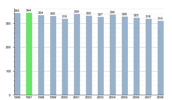 Według danych z dnia 31 grudnia 2012 roku, wieś zamieszkiwało 306 osób, w tym 131 kobiet i 175 mężczyzn[6].