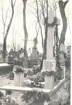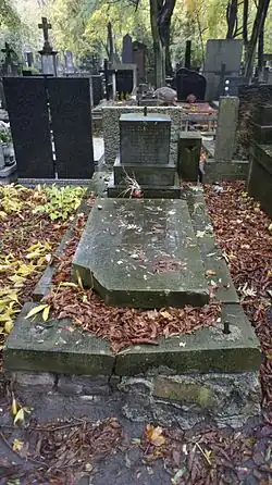 Został pochowany na Powązkach, w kwaterze nr 209. W 1928 r. staraniem przyjaciół na grobie wzniesiono pomnik w kształcie wysokiego krzyża, z napisem streszczającym w sobie twórczy ton żywota Zmarłego[19].