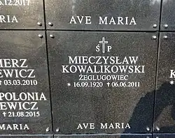 - ↑ Mieczysław Kowalikowski : Nekrologi : Dziennik Bałtycki [online], www.nekrologi.net [dostęp 2020-02-15] (pol.).