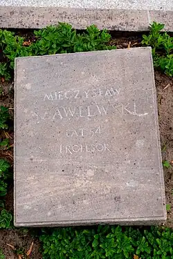 - ↑ Egzekucji dokonano w odwecie za udany atak żołnierzy AK na warszawski węzeł kolejowy (Akcja „Wieniec”). 50 więźniów powieszono wówczas grupami po 10 osób w pięciu punktach na dalekich peryferiach Warszawy oraz w strefie podmiejskiej – tj. na Woli i Pelcowiźnie oraz w Markach, Rembertowie i Szczęśliwcach. Polski Słownik Biograficzny podaje, że Szawleski został powieszony na Szczęśliwcach. Patrz: Polski Słownik Biograficzny 2010–2011 ↓, s. 169.