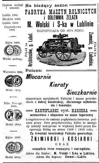 „M. Wolski i S-ka” Fabryka Maszyn Rolniczych i Odlewnia Żelaza w Lublinie