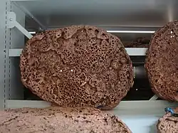 - Wydobyto 44 beczki z bryłkami żelaza, które sklasyfikowano jako osmund – półprodukt z hutnictwa (fryszerka), który należało przekuć. Żelazo miało postać bryłek o średniej wielkości 80 × 41 × 27 mm. Wiele takich bryłek odkryto luzem w piasku oraz w skorupie smolnej. Beczki, w których znajdowało się żelazo zostały zrobione z drewna pochodzącego z wielu miejsc, najprawdopodobniej w Gdańsku, lecz pochodzenie żelaza jest nieznane. Możliwe, że pochodzi z terenów Szwecji albo Słowacji. Beczki z żelazem nie musiały być szczelne. Miały kształt cylindryczny, wysokość 67–80 cm i średnicę denka 26–34 cm. Waga beczki z żelazem wynosiła ok. 150 kg[35].